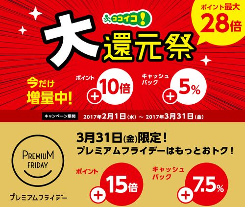 ココイコの大感謝祭がすごい!!! 三井住友VISAカードでやっているキャンペーン ココイコが凄い!!! 通常カードの決済でポイントが貯まるサービス ワールドプレゼント。このポイントが期間限定で+10倍、3月31日のプレミアムフライデーにはさらに+5倍にな…