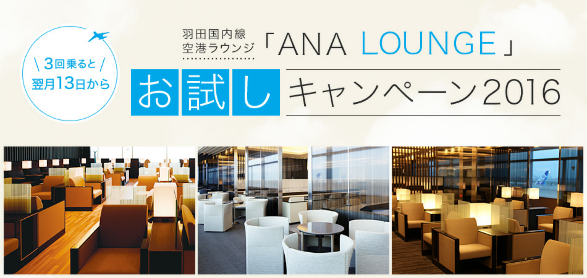 そう言えば先日、月3回飛行機を利用するとANAのラウンジがお試しで利用できるキャンペーンをやってるに気付き再チェック。